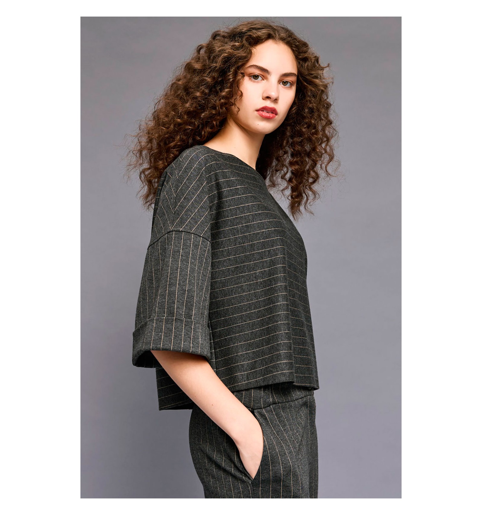 STRIPPED BLOUSE GREY Expandir