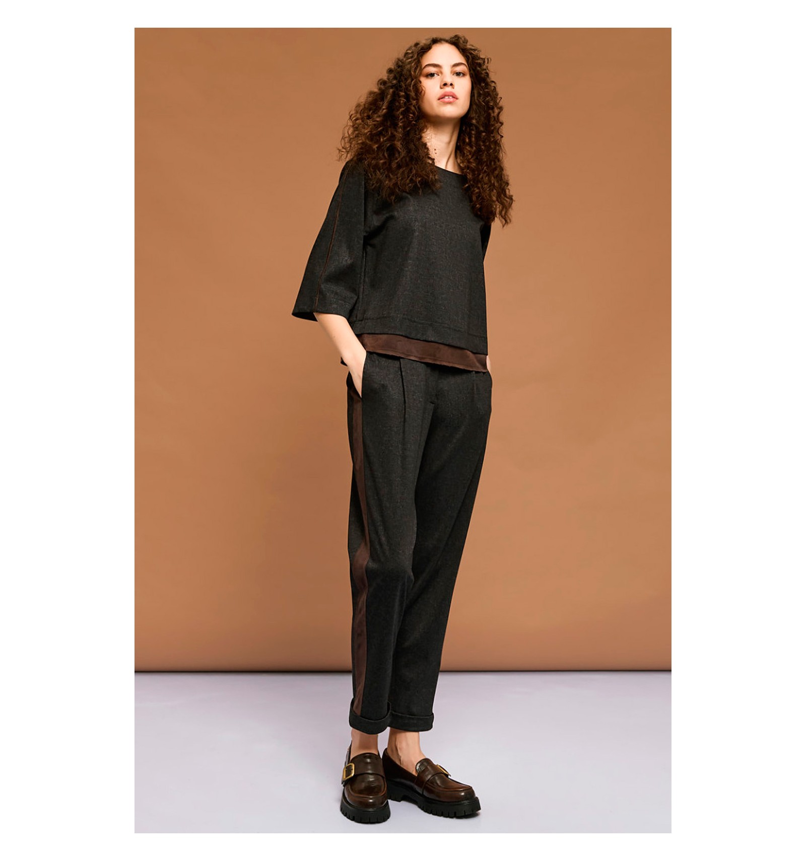 PANTS COMBI GREY BROWN Expandir
